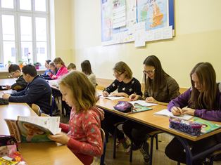 "ENGLISH CLASSROOM" to klasa językowa, która została odnowiona i wyposażona w nowoczesny sprzęt audiowizualny - tablicę interaktywną, która jest wykorzystywana na zajęciach językowych w szczególności do nauki słownictwa, wymowy i słuchania ze zrozumieniem. Na zajęciach stosowane są materiały dydaktyczne w formie interaktywnych podręczników, które ułatwiają uczniom przyswajanie materiału gramatycznego w nowoczesnej i przyjaznej dla nich formie językowej. Ponadto sala jest wyposażona w słowniki językowe oraz dodatkowe materiały dydaktyczne do nauki słownictwa i gramatyki, z których uczniowie mogą korzystać na bieżąco. W sali tej odbywają się zajęcia językowe w grupach od 8 do maksymalnie 16 uczniów. Na miłą i przyjazną atmosferę pracy wpływa również wystrój pomieszczenia, na którego ścianach zostały umieszczone tablice prezentujące osiągnięcia uczniów, plakaty, mapy językowe oraz samodzielne prace w formie projektów.