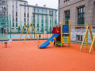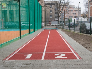 OBIEKTY SPORTOWO-REKRACYJNE - Posiadamy dwa place zabaw dla młodszych dzieci położone po obu stronach szkoły. Od jesieni 2015 roku uczniowie mają do dyspozycji nowoczesne boisko do piłki nożnej ze sztuczną nawierzchnią, bieżnię oraz boisko do koszykówki.